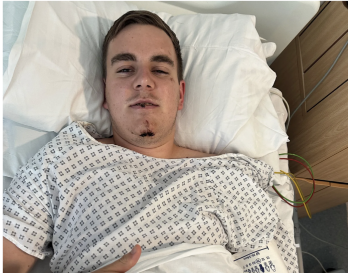 Căderea a fost violentă. Impactul i-a distrus dinții din față.