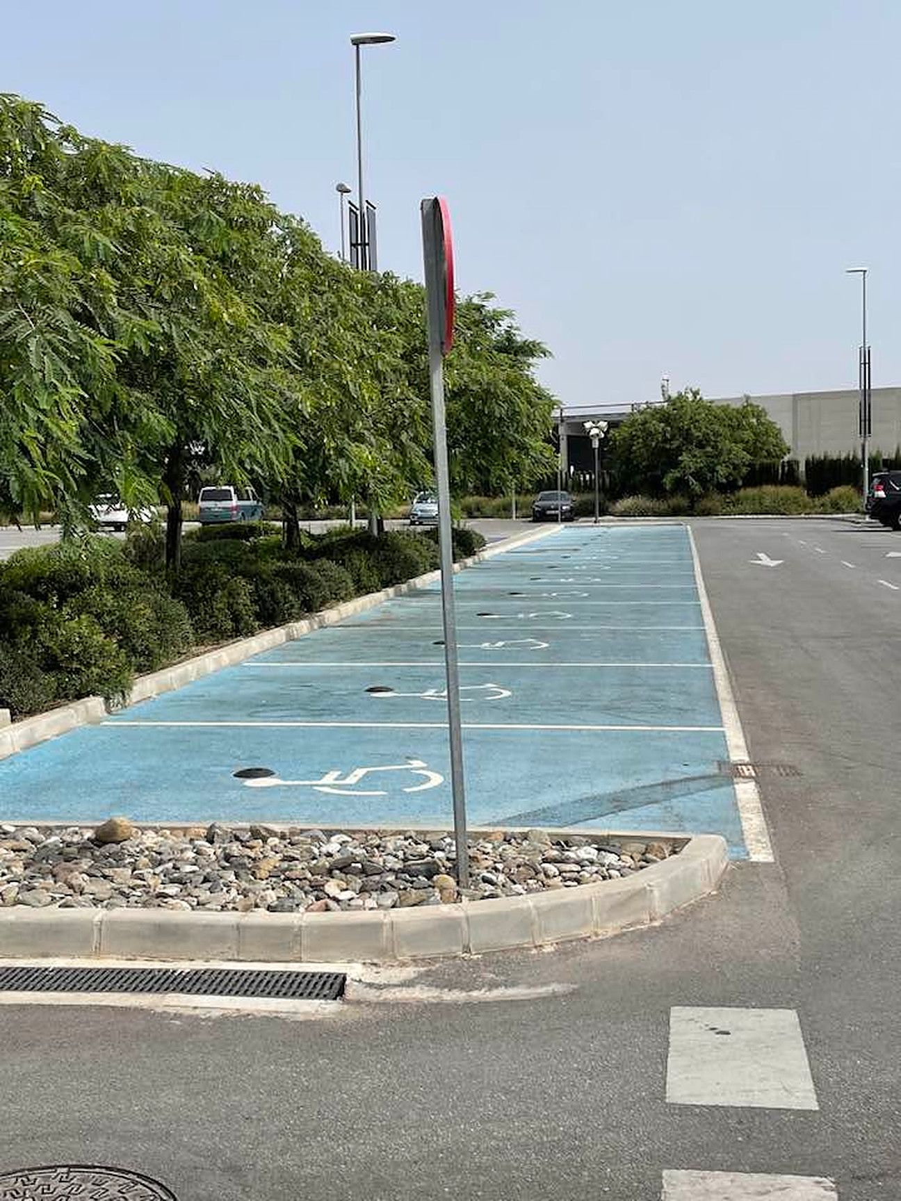 Așa cum se observă din imagine, locurile de parcare pentru persoanele cu handicap sunt amplasate multe în același loc, și, aparent, destul de departe de clădire.