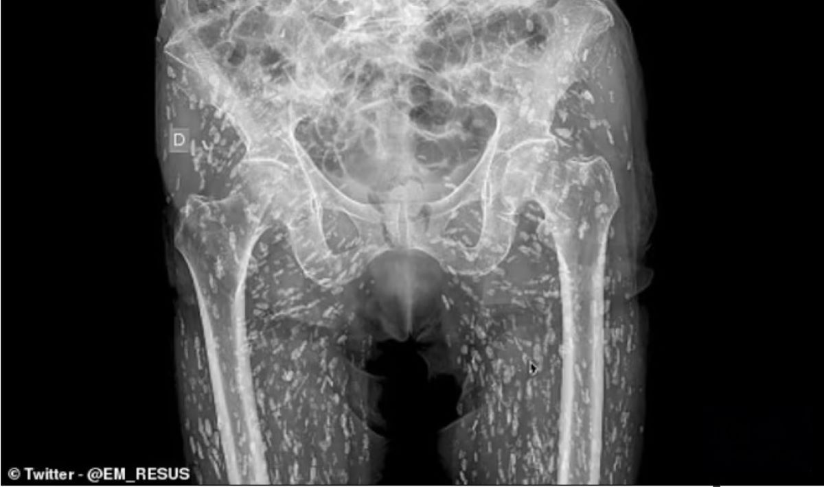 Pacientul ajunsese la spital pentru o durere de șold, însă investigația imagistică a arătat în țesuturile sale moi numeroase formațiuni dense, distribuite ca niște „boabe de orez”. Diagnosticul: cisticercoză, o infecție cauzată de larvele teniei Taenia solium.