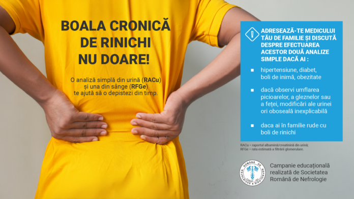 Prin campania „Boala cronică de rinichi nu doare”, Societatea Română de Nefrologie urmărește să aducă această afecțiune în atenția publicului, într-un mod similar cu bolile deja discutate frecvent, precum diabetul sau hipertensiunea.