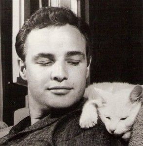 MOMENT. Brando si pisica lui intr-un moment de rasfat