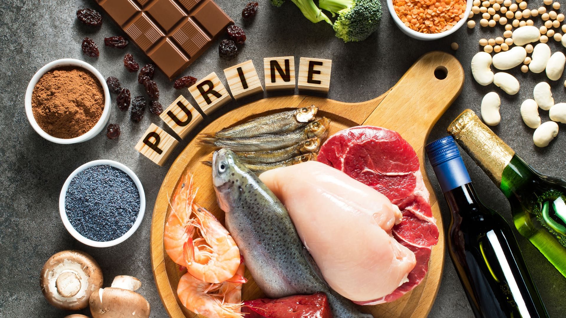 - Fructele de mare: Crustaceele (midii, scoici, anșoa, sardine, păstrăv și ton) sunt bogate în purine și ar trebui evitate.