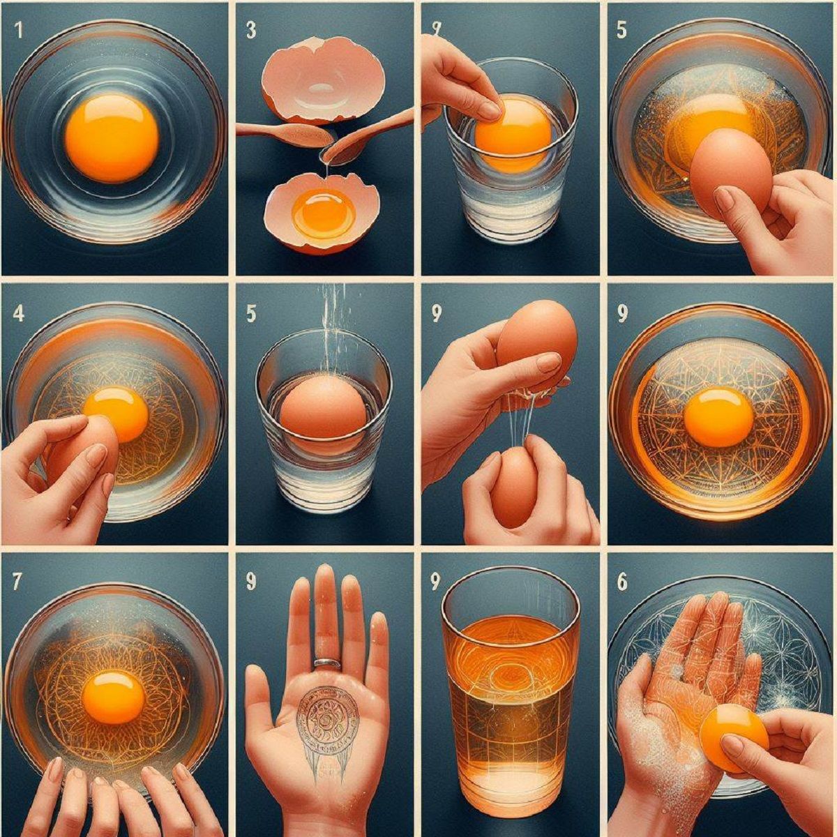 Faceți mișcări circulare pe ceafă și pe frunte cu oul. - După ce treceți oul pe tot corpul, spargeți oul în apă.