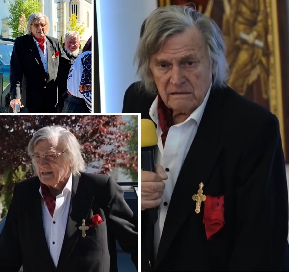 Deși vizibil slăbit și sprijinindu-se în baston, Florin Piersic nu și-a pierdut farmecul și carisma inconfundabilă. Îmbrăcat sobru, cu eșarfă roșie la gât, actorul a coborât cu greu din mașină, dar a salutat cu căldură mulțimea adunată. Gestul tradițional de întâmpinare cu pâine și sare a fost un semn al respectului profund față de maestru, iar atmosfera încărcată de emoție a făcut ca acest moment să rămână în amintirea celor prezenți.