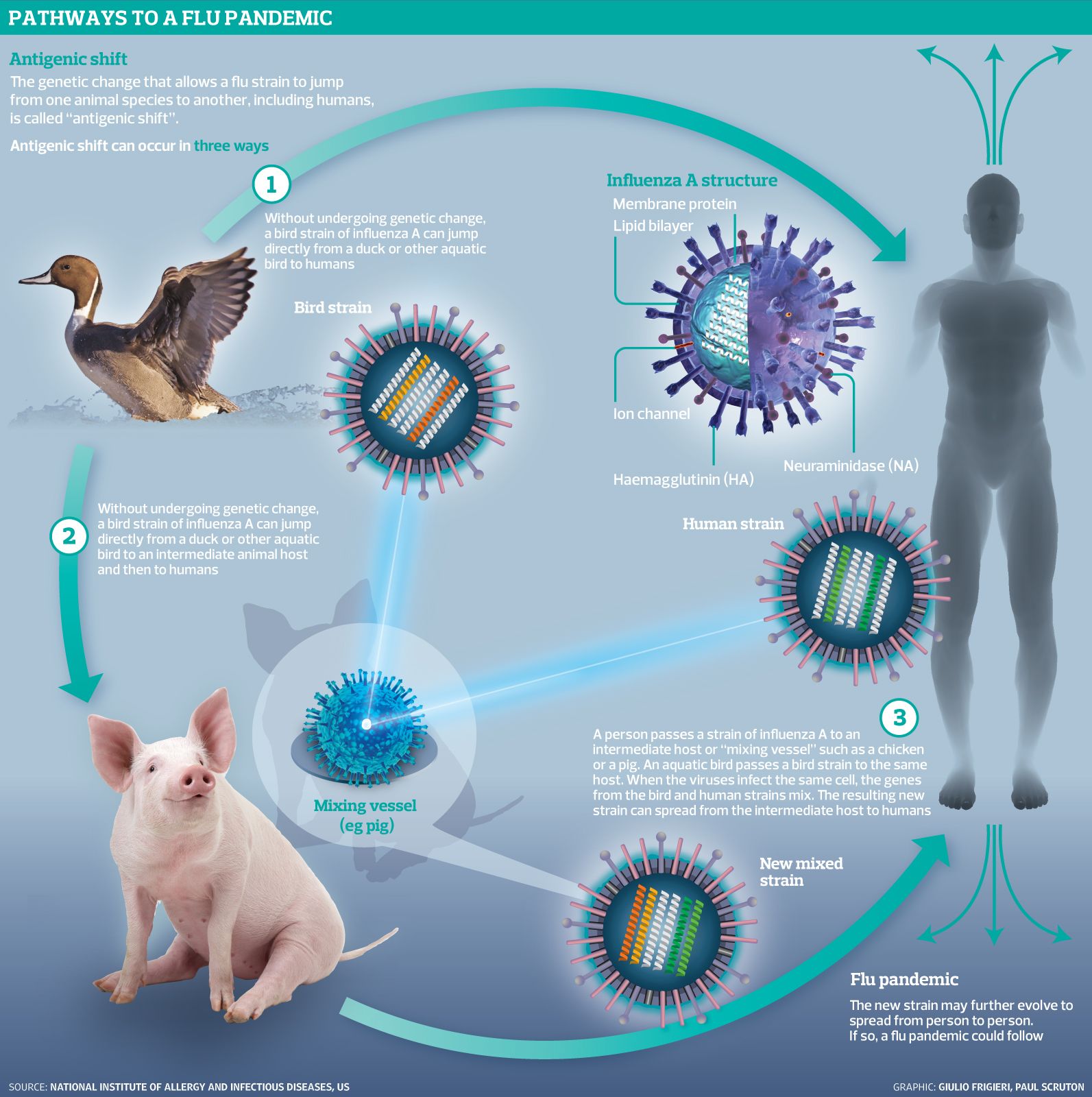 Jeremy Farrar, cercetătorul șef al Organizației Mondiale a Sănătății, a anunțat că, deși, până în prezent, nu există nicio dovadă privind capacitatea virusului gripei aviare de a se transmite de la om la om, “există o îngrijorare imensă că acesta va dezvolta această capacitate”, având în vedere cazurile tot mai dese în care el a trecut de la păsările de curte la capre și la vaci.