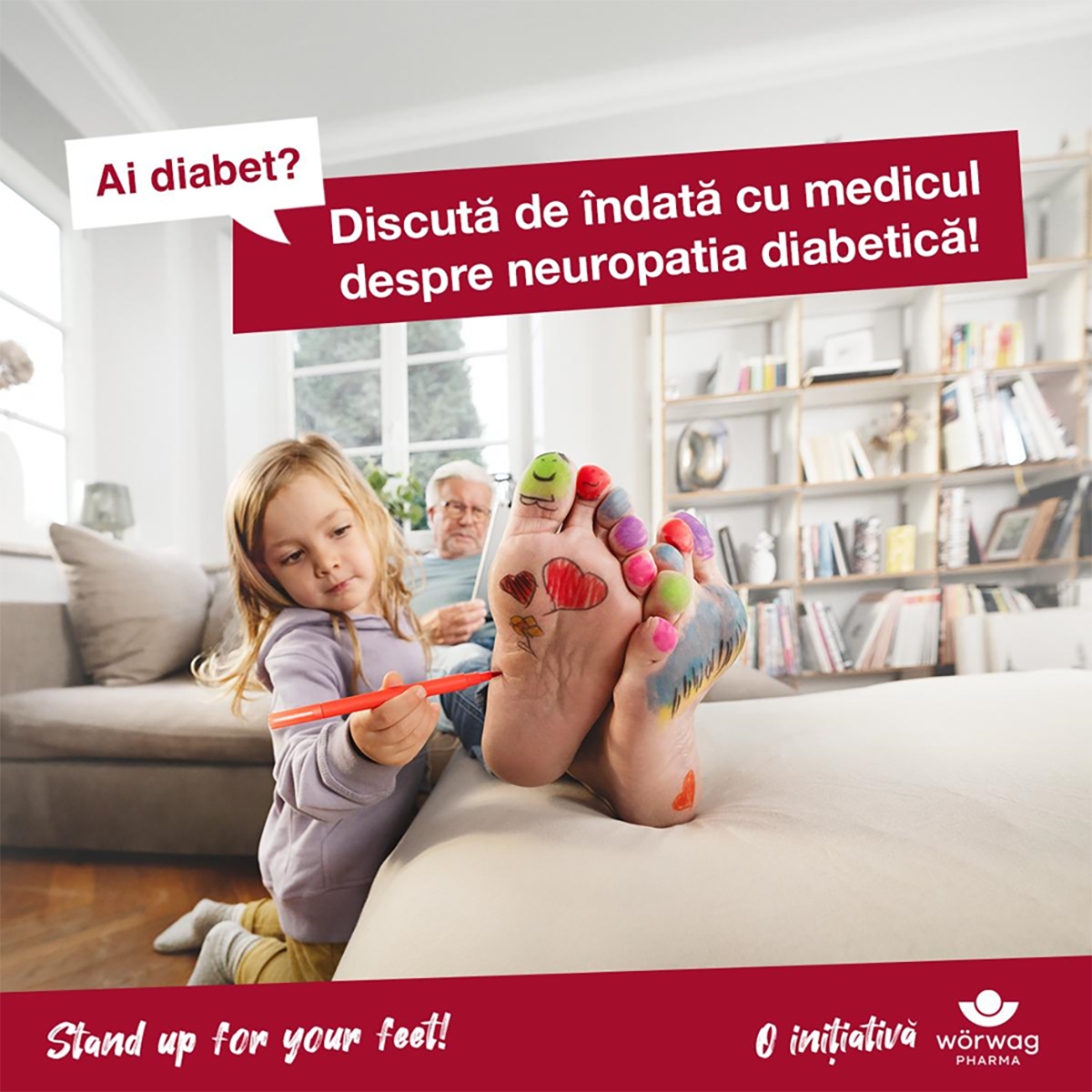 Dacă ai diabet, inițiativa „Stand up for your feet!” îți recomandă să realizezi acest test de autoevaluare la fiecare 6 luni. Descoperirea cauzei suferinței într-un stadiu incipient poate avea un impact semnificativ asupra stării de bine generală. Cu cât se acționează mai devreme și se iau măsuri adecvate, cu atât cresc șansele de a experimenta o ameliorare a simptomelor și de a îmbunătăți calitatea vieții.