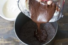 7. După ce au trecut 15 minute luați de la frigider amestecul și adaăugați al treilea strat din baza de vanilie rămasă. Întide-o bine cu ajutorul unei spatule.