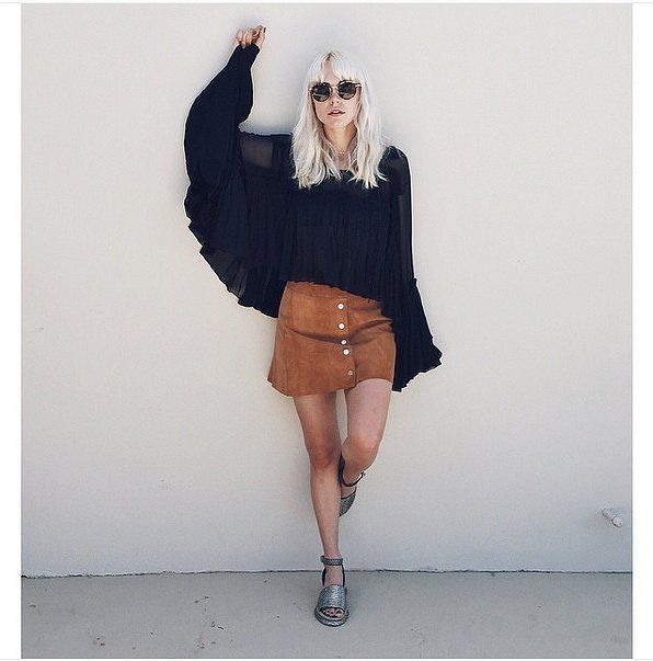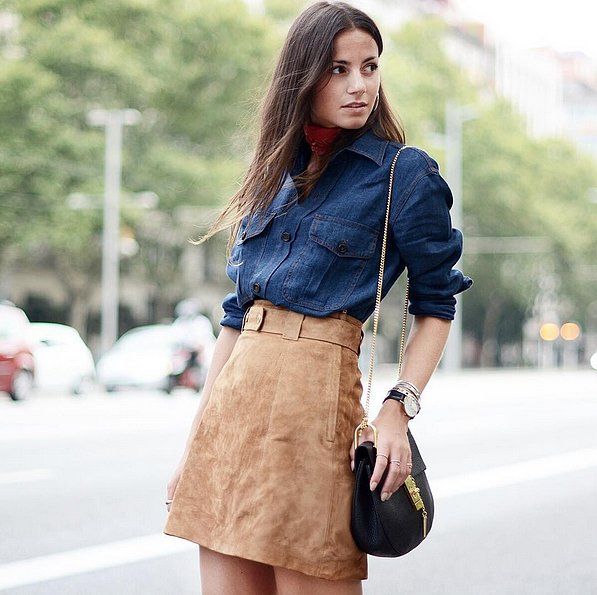 Fusta din piele întoarsă de inspirație cowboy te va aduce înapoi în anii 70. Această fustă este perfectă pentru vremea răcoroasă de toamnă. Iată cum o porți și cum o accesorizezi